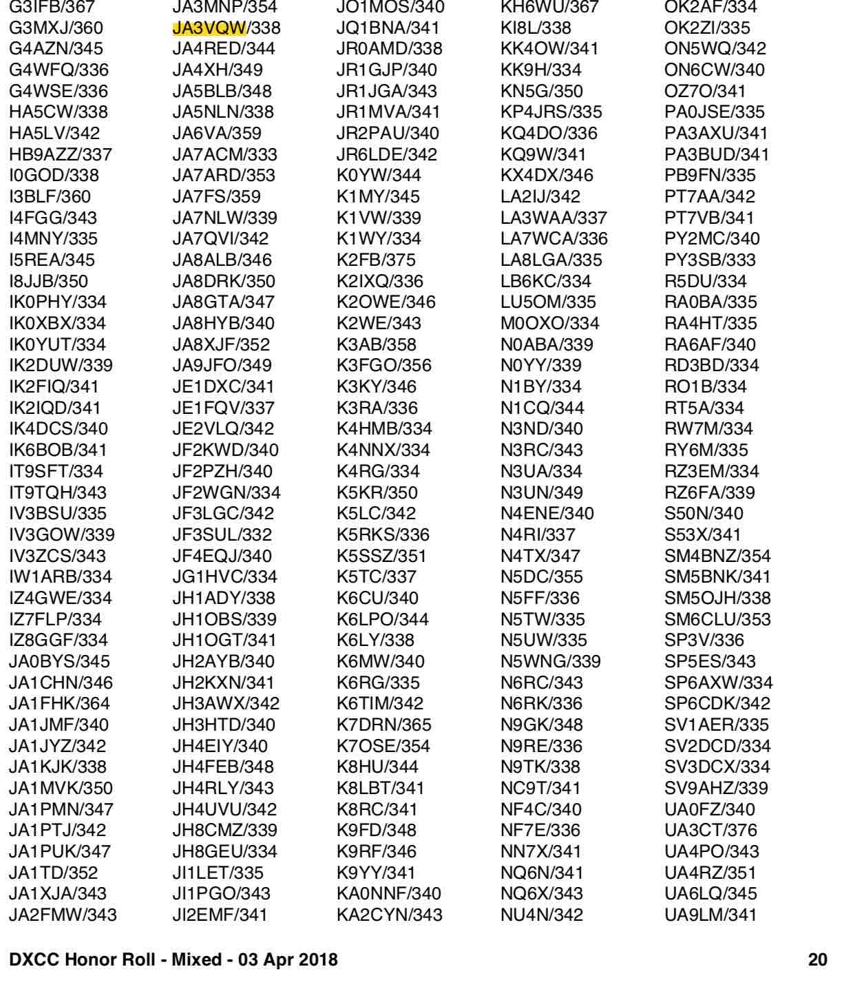 2017年07月22日 DXCCのStandingsにも載りました。
